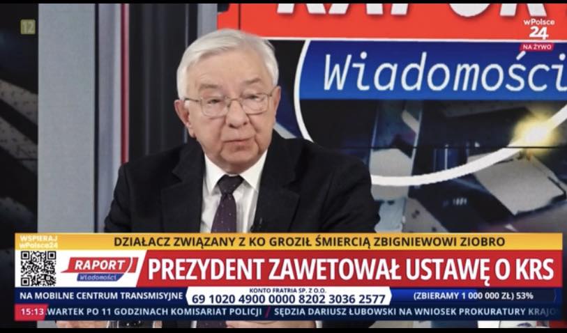 📺 Raport "Wiadomości" wPolsce24 i rozmowa z dziennikarskim duetem Anną Pawelec 🤝 Bartoszem Łyżwińskim o zawetowaniu przez 🇵🇱 Prezydenta RP Karola Nawrockiego nowelizacji ⚖️ustawy o KRS. 💬 To bardzo dobra decyzja Pana Prezydenta. Ta ustawa w proponowanej formule jest niekonstytucyjna. Nie ma nic wspólnego z przywracaniem praworządności w Polsce. Owszem, po tym co wyprawia 🙈koalicja 13 grudnia 👉 trzeba przywrócić praworządność w naszym kraju. Ale nie w oparciu o działania ‼️grupy polityków w togach‼️ która chce zniszczyć obowiązującą ustawę o KRS - podkreśliłem. /fb/DEBATA W POLSAT NEWS POLITYKA |
