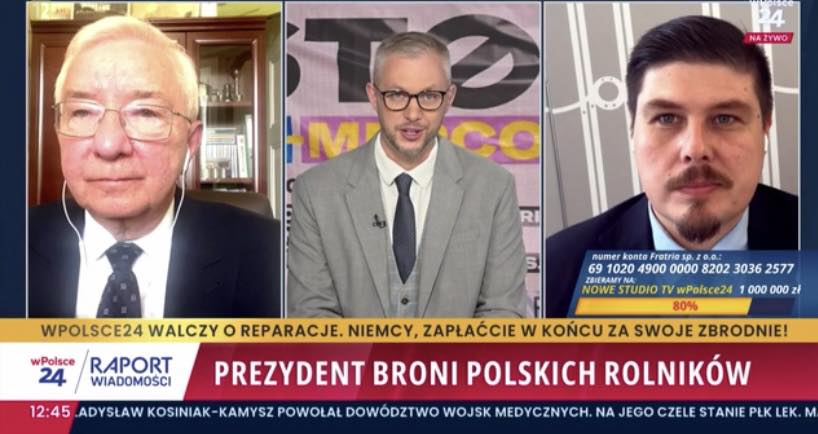 Bejsce. Z Pałacu Badenich za pośrednictwem łącza internetowego byłem gościem red. Damiana Stanisławskiego w programie "Raport" na antenie TV wPolsce24. Rozmawialiśmy o wizycie Prezydenta RP Karola Nawrockiego w Niemczech i we Francji.