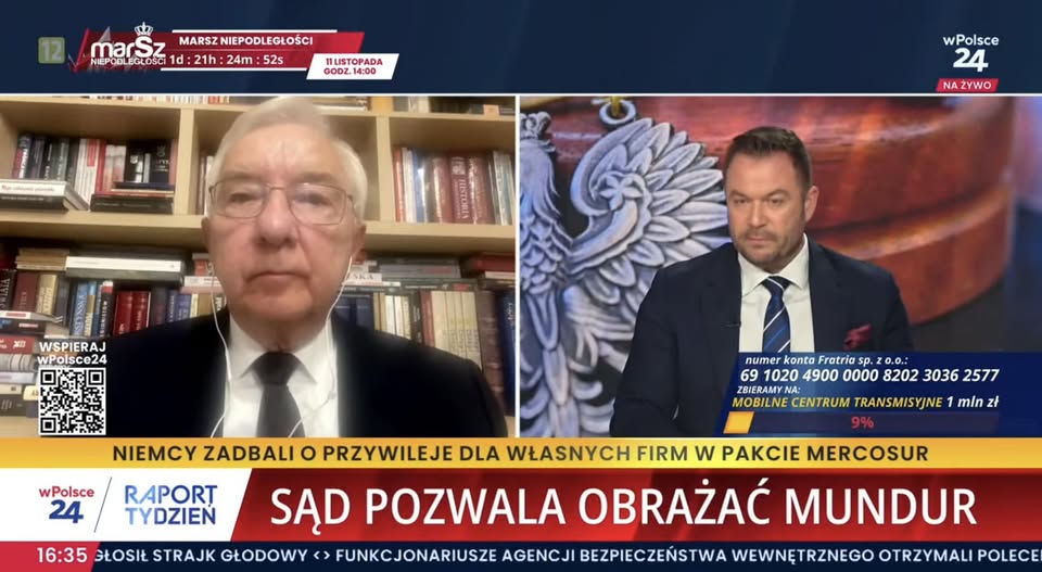 Starachowice. Za pośrednictwem łącza internetowego byłem gościem red. Bartosza Łyżwińskiego w programie „Raport” na antenie TV wPolsce24. Rozmawialiśmy o braku szacunku ze strony rządu Donalda Tuska wobec funkcjonariuszy Straży Granicznej. Ewidentnym tego dowodem jest wycofanie ochrony dla kpt Anny Michalskiej w sądowym procesie w którym uniewinniono aktora sprawcy poniżenia godności kobiety - oficera Straży Granicznej. 🎙 Tusk okazuje większy szacunek agresorom niż tym, którzy bronią Polski. /fb/