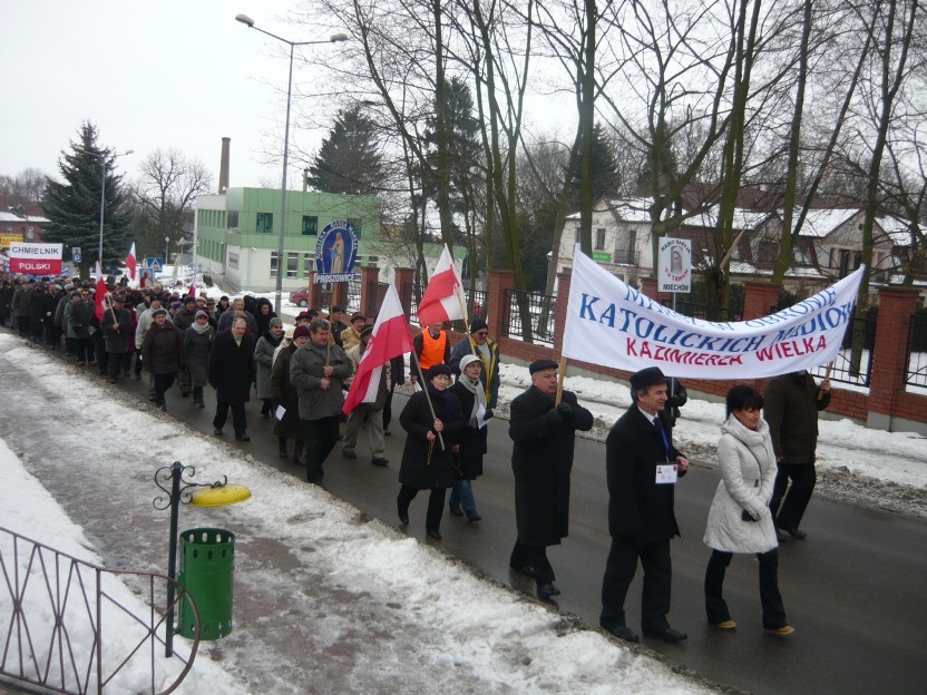 Kazimierza Wielka. W 1 Niedzielę Wielkiego Postu, 17 lutego 2013 r. w Kazimierzy Wielkiej odbył się marsz w obronie mediów katolickich. O godz. 12.00 w kościele Podwyższenia Krzyża Świętego w Kazimierzy Wielkiej została odprawiona Msza św. w intencji katolickich mediów. Eucharystii przewodniczył i Słowo Boże wygłosi delegat Biskupa Kieleckiego ks. prałat dr Andrzej Kaszycki, Kanclerz Kurii Diecezjalnej w Kielcach. Po Mszy św. marsz przeszedł ulicami Kazimierzy Wielkiej i zakończył się na placu przed kościołem Miłosierdzia Bożego, gdzie odczytany został apel do Krajowej Rady Radiofonii i Telewizji o zaprzestanie dyskryminacji Telewizji TRWAM i przyznanie tej stacji miejsca na cyfrowym multipleksie. W marszu, który przeszedł ulicami Kazimierzy Wielkiej wzięło udział kilkaset osób zarówno z terenu powiatu kazimierskiego, jak i sąsiednich powiatów.