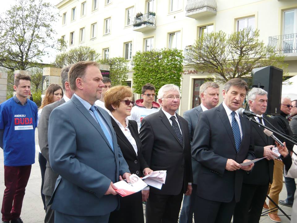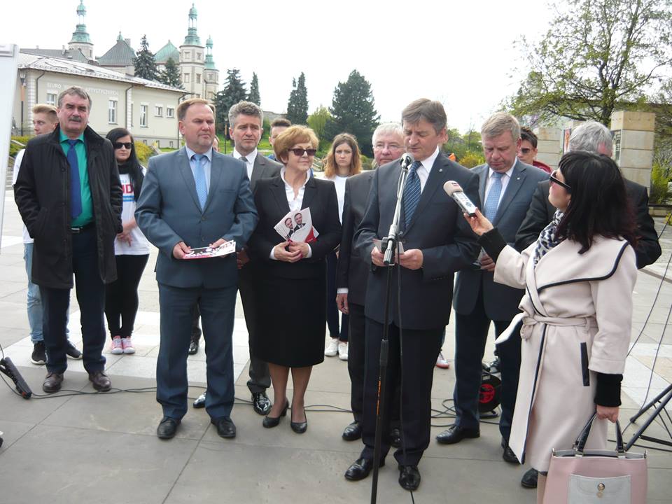 #PolitycznyPlacArtystówKielce. W towarzystwie świętokrzyskich parlamentarzystów PiS, wicemarszałek Sejmu RP Marek Kuchciński podczas briefingu prasowego mówił o o ochronie wyborów przed fałszarstwami. #UczciweWybory to dla nas najważniejsze wyzwanie. W tym celu stworzyliśmy Korpus Ochrony Wyborów. W świętokrzyskim Korpusem Ochrony Wyborów dowodzi wiceprzewodniczący Sejmiku Świętokrzyskiego Andrzej Pruś. Na Placu Artystów był z nami Wojciech Lubawski prezydent Kielc. /fb/