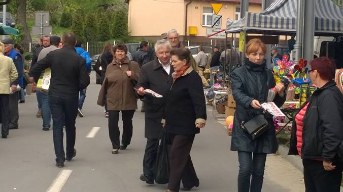 Staszów. Pełnomocnik świętokrzyskiego PiS, Poseł na Sejm RP Krzysztof Lipiec oraz poseł Marek Kwitek na początku ostatniego tygodnia kampanii wyborczej spotkali się z dziennikarzami na staszowskim rynku /fb - Andrzej Pruś/. Dziennikarze zostali zapoznani z Listem skierowanym do Polaków przez przyszłego Prezydenta Polski Andrzeja Dudę. Wcześniej parlamentarzyści spotykali się z Wyborcami na miejskim targowisku przekazując im materiały wyborcze Andrzeja Dudy.