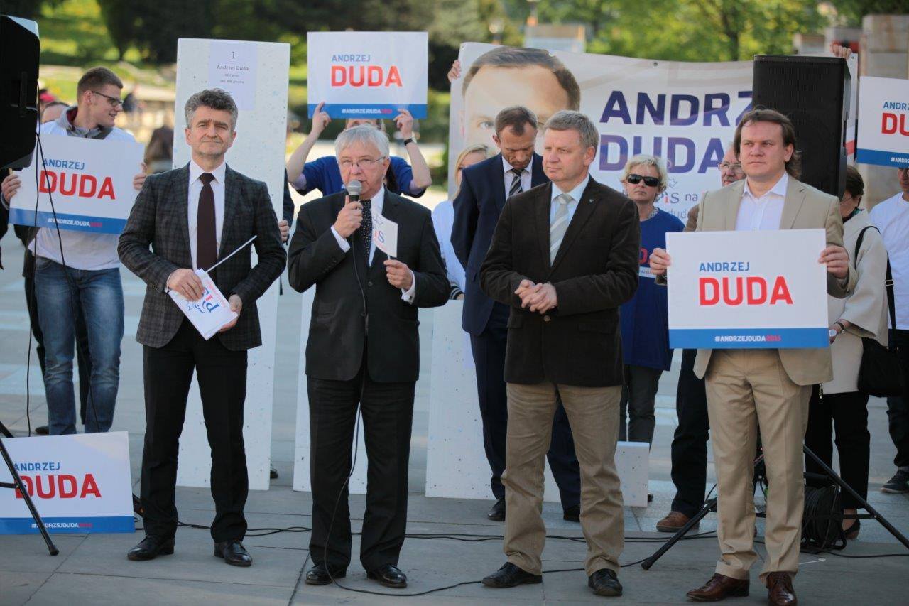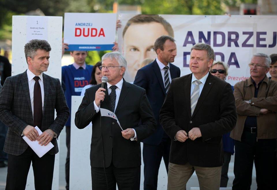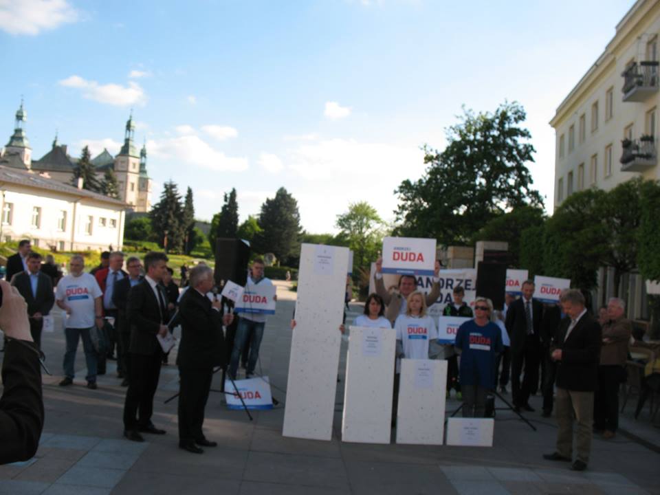 Kielce. Spontaniczny Miting Swiętokrzyskiego PiS miał miejsce na Placu Artystów. Razem radowaliśmy się ze zdecydowanego zwycięstwa dr Andrzeja Dudy w I pierwszej turze wyborów prezydenckich. W świętokrzyskim zyskał On poparcie 181 398 osób, co stanowi 38,1% ważnych głosów i pokonał obecnego prezydenta, który otrzymał 106 453 głosów /22,4%/. Dopiero 4 był marszałek województwa Adam Jaubas, otrzymując 61 908 głosów /13%/. Serdecznie dziękuję za udział w wyborach. Szczególne podziękowanie kieruję do tych mieszkańców świętokrzyskiego, którzy oddali głos na przyszłego Prezydenta Polski Andrzeja Dudę. /fb/ fot. Marianna Noworycka-Gniatkowska, Jerzy Kurzątkowski.