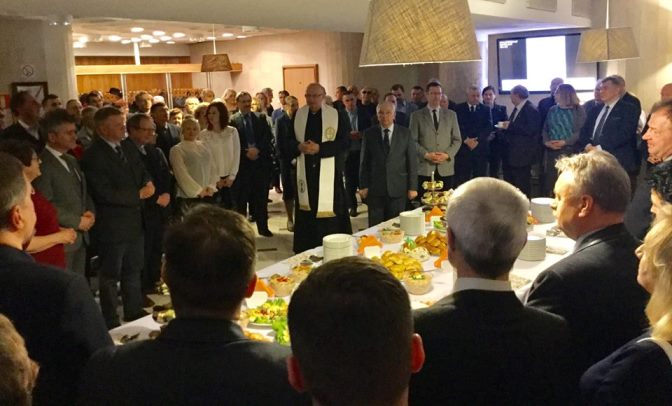 Kielce.Wielkanocne spotkanie świętokrzyskiej wspólnoty Prawa i Sprawiedliwości uświetnił Zespół Kunowianie. Honorowym gościem był ojciec Zygfryd Wiecha OMI superior Zgromadzenia Ojców Misjonarzy Oblatów Maryi Niepokalanej na Świętym Krzyżu, który skierował do nas wielkanocne przesłanie i poświęcił pokarmy przygotowane na wielkanocny stół. /fb/