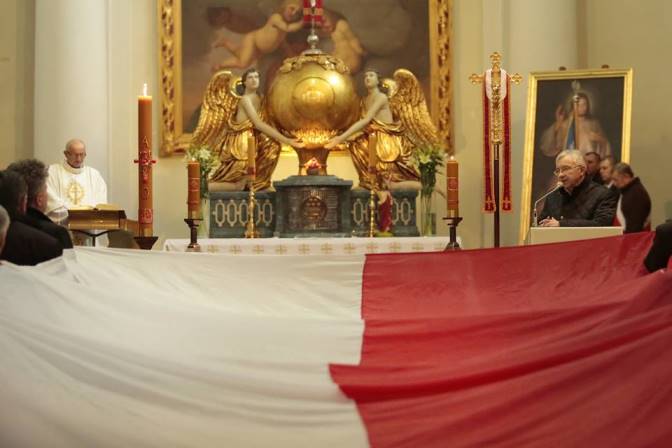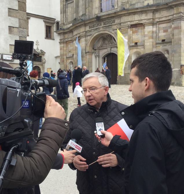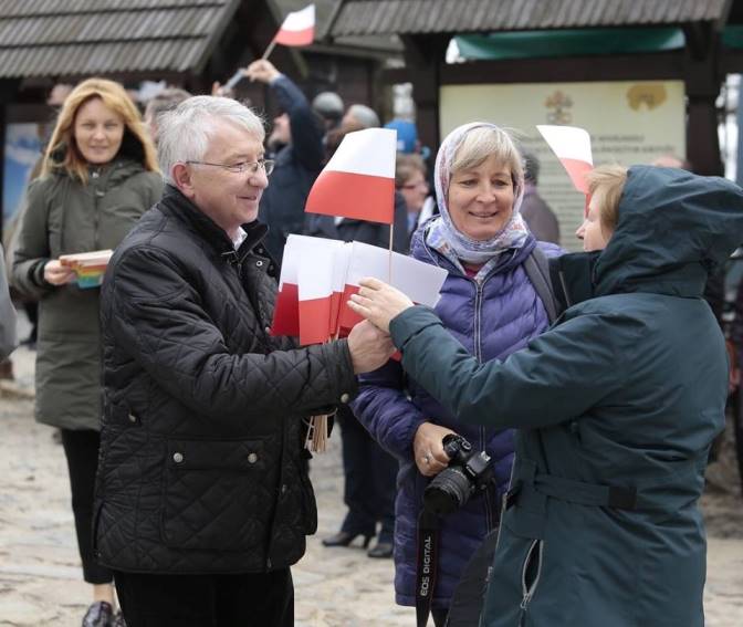 Święty Krzyż. Majówka Świętokrzyskiego Prawa i Sprawiedliwości. Na wieży Klasztoru Ojców Misjonarzy Oblatów MN zawisła kilkudziesięciometrową biało-czerwona flaga. Gościom dzisiejszej majówki przekazywałem biało - czerwone flagi. Mszę Świętą za Ojczyznę odprawił superior Klasztoru Świętokrzyskiego ojciec Zygfryd Wiecha. Na Jego ręce w imieniu świętokrzyskiego PiS wyraziłem wdzięczność za to, że dzisiaj w dniu święta Narodowej Flagi w tym szczególnym miejscu do którego pielgrzymowali polscy królowie mogliśmy dać świadectwo przynależności do dumnego polskiego Narodu. Po nabożeństwie majowym spotkaliśmy się na pikniku rodzinnym.Ojcom Misjonarzom Oblatom Maryi Niepokalanej dziękujemy za serdeczność i życzliwe przyjęcie. /fb/