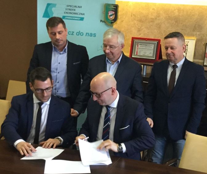 Starachowice. Specjalna Strefa Ekonomiczna "Starachowice" sponsorem SKS STAR. W świetle kamer i w obecności dziennikarzy podpisano umowę sponsorską. Plan jest bardzo ambitny III liga na 95-lecie Klubu, a na 100-lecie ekstraklasa. To wszystko jest możliwe. Kibicujemy piłkarzom. Niech STAR będzie chlubą naszego miasta. Podziękowanie wraz z gratulacjami dla prezesa SSE Marcina Perza i prezesa SKS Emila Krzemińskiego. Trzymamy kciuki. /fb/