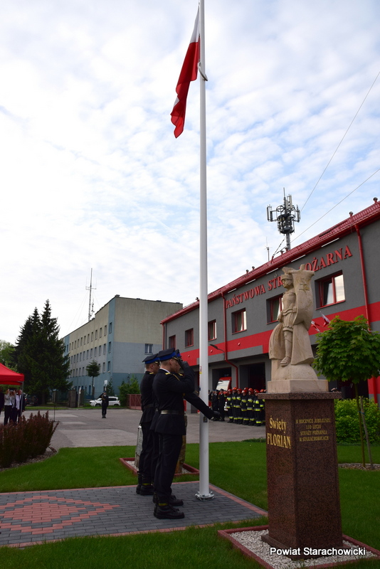 Starachowice. Uroczysta zbiórka strażacka w Komendzie Powiatowej Państwowej Straży Pożarnej w dniu Święta Flagi Rzeczypospolitej Polskiej. Funkcjonariuszom Państwowej Straży Pożarnej wyraziłem wdzięczność za patriotyczną postawę i okazane dziś świadectwo przywiązania do służby dla Rzeczypospolitej. /fb/