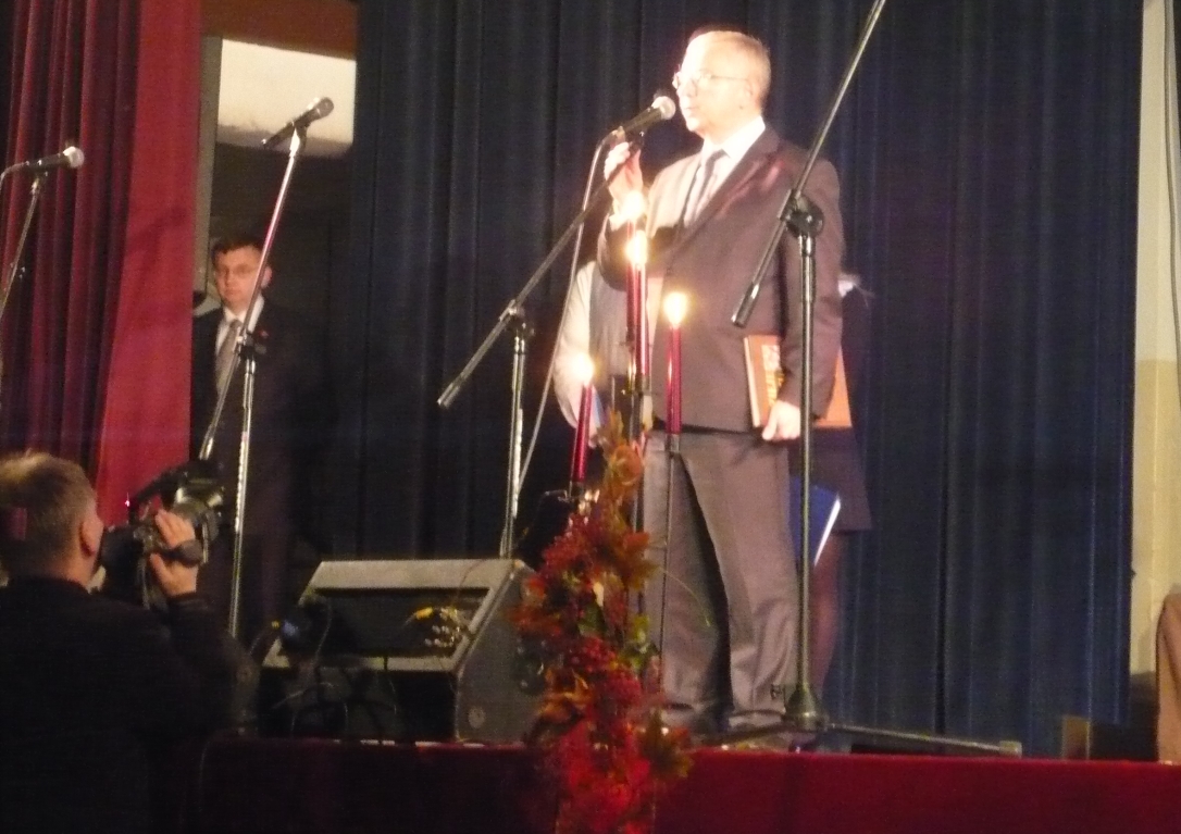 Starachowice. Poseł Krzysztof Lipiec wziął udział w uroczystościach jubileuszowych 75-lecia I Liceum Ogólnokształcącego im. Tadeusza Kościuszki w Starachowicach. Podczas uroczystego spotkania nauczycieli i absolwentów, które odbyło się w sali widowiskowej Starachowickiego Centrum Kultury, poseł Krzysztof Lipiec złożył najserdeczniejsze życzenia dla wszystkich byłych i obecnych nauczycieli tej szkoły oraz jej uczniów i absolwentów. Na zakończenie swojego wystąpienia, poseł Krzysztof Lipiec przekazał na ręce dyrektora liceum Dariusza Lipca wyjątkowy dar dla szkolnej biblioteki. Była to unikatowa publikacja "Dzieje Sejmu Polskiego".Poseł na Sejm RP Krzysztof Lipiec podczas przemówienia na uroczystości jubileuszowej 75-lecia I Liceum Ogólnokształcącego im. Tadeusza Kościuszki w Starachowicach