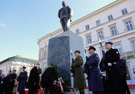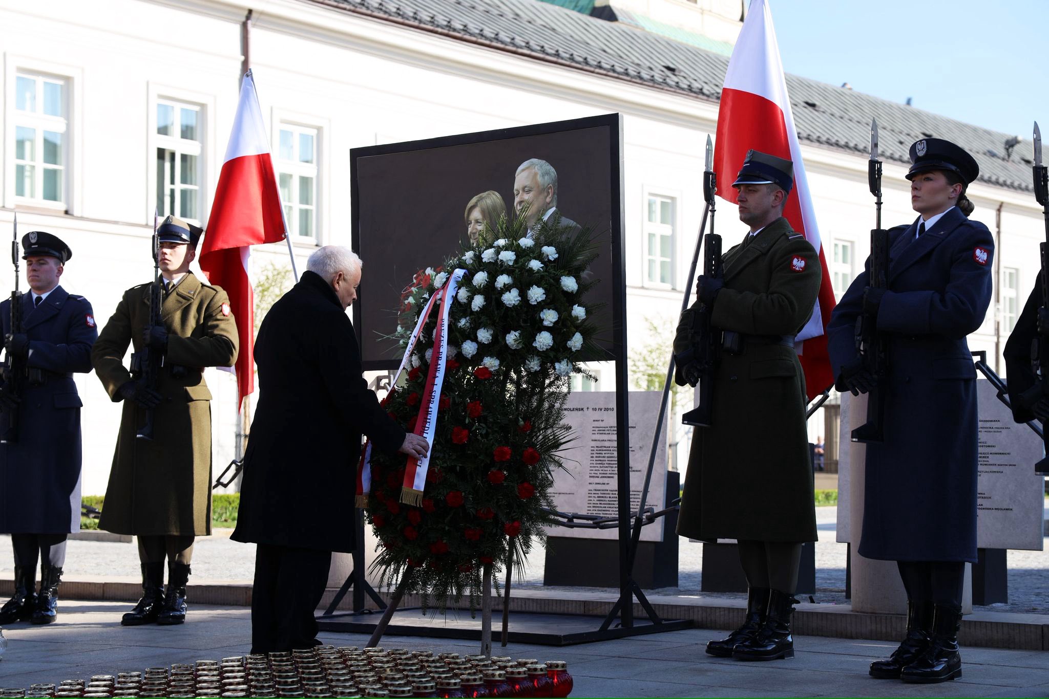 Warszawa. W XVI rocznicę Katastrofy Smoleńskiej Prezes PiS Jarosław Kaczyński, Prezydent RP Karol Nawrocki oraz Przedstawiciele Prawa i Sprawiedliwości oddali hołd i złożyli kwiaty przed Pałacem Prezydenckim, pod Pomnikiem upamiętniającym Śp. Prezydenta RP Lecha Kaczyńskiego oraz pod Pomnikiem Ofiar Tragedii Smoleńskiej 2010 roku. #Pamiętamy 🕯️ /fb/