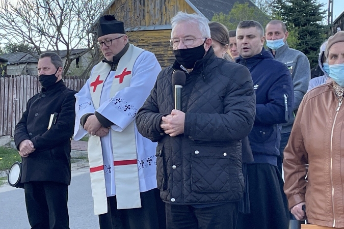 Skały. Chwalcie łąki umajone przy przydrożnym ponad 100-letnim krzyżu wyśpiewaliśmy z mieszkańcami tej urokliwej wioski w Górach Świętokrzyskich. A to dzięki sołtysowi Paweł Sadrak, który tak pieczołowicie zabiega u kultywowanie polskich tradycji. Razem z nami „majówkę” śpiewał starosta kielecki Mirosław Gębski. /fb/GŁOS DNIA W TVP3 KIELCE |