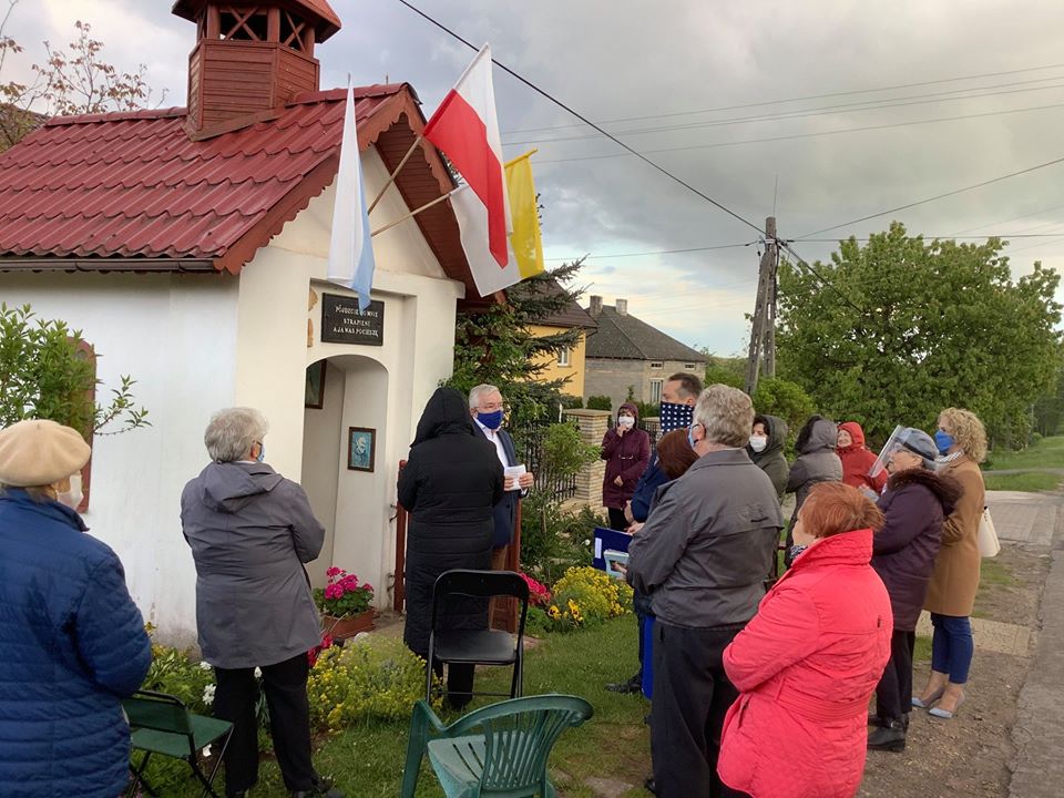 Mędrów. Przed przydrożną kapliczką z 1895 roku odśpiewaliśmy Majówkę. Mieszkańcom Mędrowa podziękowałem za wspólną modlitwę oraz za pielęgnowanie pięknej staropolskiej tradycji majówkowych spotkań modlitewnych. /fb/WIZYTA W DWORKU LASZCZYKÓW |