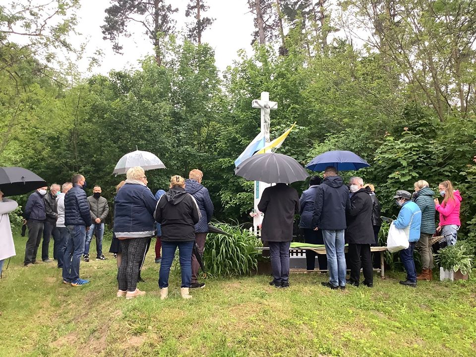 Piotrów. Najpierw przed przydrożną kapliczką z 1910 roku, a później przed Krzyżem odśpiewaliśmy Majówkę. /fb/GŁOS DNIA W TVP3 KIELCE |