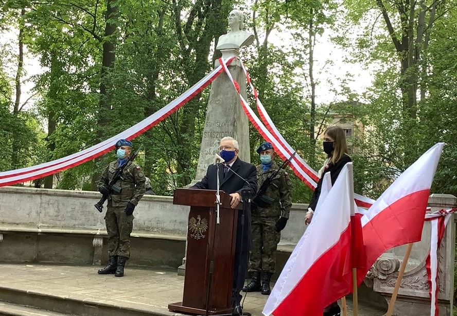 Kielce. Uroczyste obchody Narodowego Święta Konstytucji 3 Maja. 🇵🇱 🇵🇱 🇵🇱 Najpierw w kościele garnizonowym Msza Święta w intencji Ojczyzny celebrowana prze ks. bpa Andrzeja Kaletę i ks. ppłk Grzegorza Kamińskiego, a następnie patriotyczne zgromadzenie przed pomnikiem Stanisława Staszica w Parku Miejskim. Gospodarzem uroczystości był wojewoda świętokrzyski dr Zbigniew Koniusz. ✅ Konstytucja nie powinna być noszona tylko na manifestacjach. Powinna być noszona w sercach i umysłach. My Polacy powinniśmy wiedzieć, że ona jest pierwszorzędnym, najwyższym prawem Rzeczypospolitej i wszystkie inne prawa są podporządkowane naszej konstytucji - mówiłem podczas uroczystości. /fb/