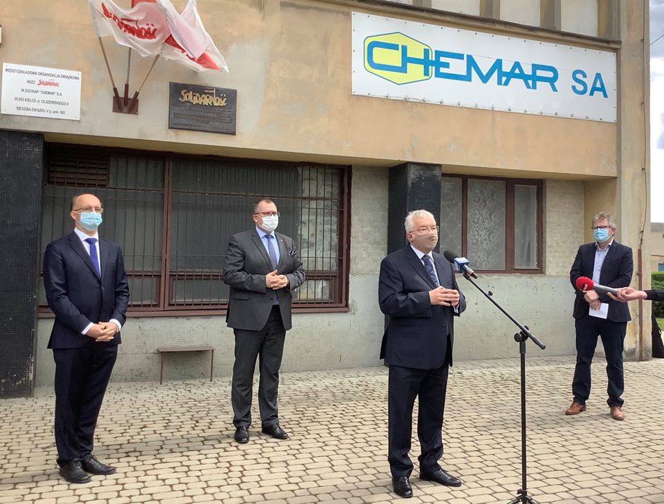 🎙Jestem przekonany, że już niebawem będziemy się mogli cieszyć pełnią sukcesu obserwując działalność kieleckiego Chemaru. Za wszystkie podjęte działania w celu ratowania zakładu pragnę podziękować zarówno przedstawicielom ARP, rządowi premiera Mateusza Morawieckiego, który skutecznie wdraża plan zrównoważonego rozwoju a także przedstawicielom zakładowej „Solidarności”, która jako pierwsza zwróciła się, do mnie, o pomoc w rozwiązaniu kłopotów Spółki - mówiłem m.in. podczas briefingu. /fb/ Relacja TVP3 Kielce