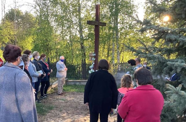 Cząstków. Przed 100-letnia kapliczką Matki Bożej umieszczonej na przydrożnym Krzyżu odśpiewaliśmy Majówkę. /fb/ROZMOWA DNIA W RADIO KIELCE |