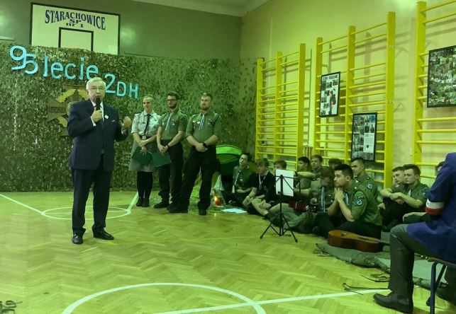 Starachowice. W dniu Jubileuszu 95-lecia 2 Drużyny Harcerskiej im. Mariana Langiewicza podczas uroczystej zbiórki drużyny przekazałem Jubilatom wyrazy wdzięczności za służbę Rzeczypospolitej w harcerskich mundurach. Na ręce drużynowego dh phm Pawła Lesiaka przekazałem w darze pamiątkowy medal z wizerunkiem patrona drużyny Mariana Langiewicza wybity na okoliczność 150 rocznicy Powstania Styczniowego przez Komitet Budowy Pomnika gen. Mariana Langiewicza w Wąchocku. Składając gratulacje z racji Jubileuszu przekazałem harcerzom najlepsze życzenia, aby zawsze dotrzymywali danego słowa z Przyrzeczenia Harcerskiego. /fb/JEZIORANECZKI ŚWIĘTUJĄ |