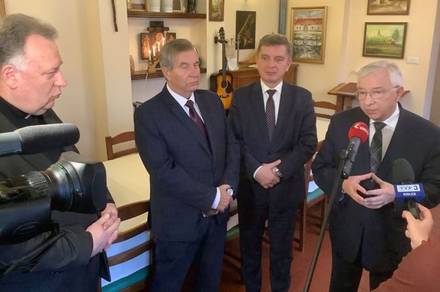 Rytwiany. Briefing prasowy w Pustelni Złotego Lasu. Podsumowano prace restauratorskie, które zostały wykonane w minionym roku dzięki finansowemu wsparciu Ministra Kultury i Dziedzictwa Narodowego. Dzisiaj konferowaliśmy o przyszłości tego wyjątkowego miejsca w regionie świętokrzyskim. Bardzo dziękuję prof. Zbigniewowi Myczkowskiemu, panu wojewodzie Zbigniewowi Koniuszowi, panu Andrzejowi Prusiowi przewodniczącemu Sejmiku i panu Józefowi Żółciakowi staroście staszowskiemu za udział w tej konferencji. Księdzu Dyrektorowi Wiesławowi Kowalewskiemu jestem wdzięczny za ogromną troskę o ochronę kulturowego dziedzictwa i za serdeczne przyjęcie w pokamedulskiej Pustelni Złotego Lasu. /fb/OPŁATEK OPATOWSKIEGO PiS |
