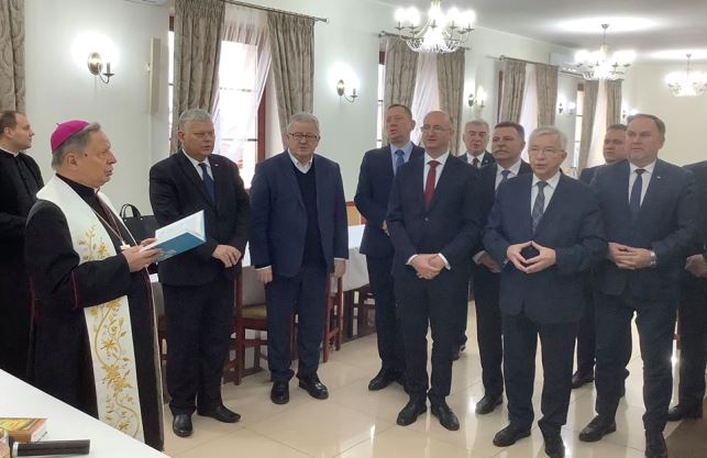 Kielce. Noworoczne kolędowanie Świętokrzyskiego Prawa i Sprawiedliwości. Serdecznie dziękuję za tę Wspólnotę wokół Pastrzy trzech diecezji ks. bpa Jana Piotrowskiego ordynariusza kieleckiego, ks. bpa Henryka Tomasika ordynariusza radomskiego i ks. bpa Krzysztofa Nitkiewicza ordynariusza radomskiego. Łamiąc się opłatkiem złożyliśmy sobie życzenia na Nowy 2020 Rok. Wdzięczni jesteśmy Chórowi Parafii Garnizonowej pod dyr. Edyta Bobryk za wspólne kolędowanie. /fb/ORSZAK TRZECH KRÓLI |