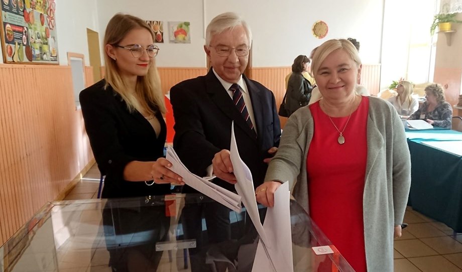 Starachowice. Moja rodzina już po głosowaniu. Mój lokal wyborczy zlokalizowany był w Szkole Podstawowej nr 1.Byłem tam z moją żoną Renatą i córką Magdaleną.🇵🇱🇵🇱🇵🇱 /fot. Anna Głąb/ - fb