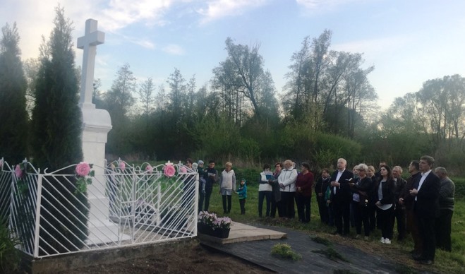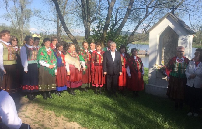 Wielka Wieś. Przy przydrożnym Krzyżu nabożeństwu majowemu przewodniczył ojciec Benedykt Zieliński OCist z Opactwa Cysterskiego w Wąchocku. Na gitarze akompaniował Marek Sołtys Samsonowski. Razem z przewodniczącym Sejmiku Andrzejem Prusiem wyśpiewaliśmy chwałę Matki Bożej. /fb/