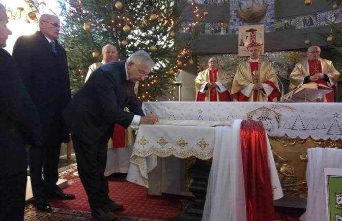 Pacanów. Mszą Świętą w Bazylice Pacanowskiej pod przewodnictwem ks. Bp Mariana Florczyka rozpoczęły się uroczystości na okoliczność odzyskania praw miejskich. Miałem honor podpisać stosowny akt stanowiący o tym, że po 150 latach Pacanów odzyskał prawa miejskie utracone na mocy carskiego ukazu po Powstaniu Styczniowym. W Europejskim Centrum Bajki odbyła się uroczysta, pierwsza sesja Rady Miejskiej. Burmistrzowi Pacanowa Wiesław Skop dziękuję za zaproszenie na dzisiejsze uroczystości. /fb/
