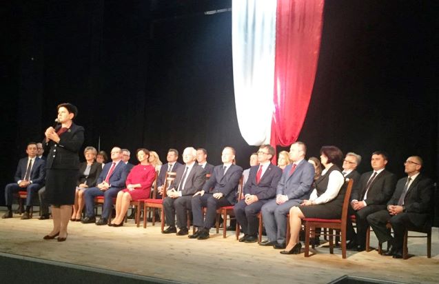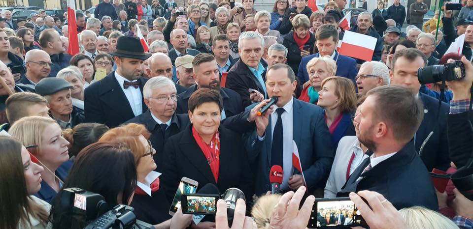 Włoszczowa. Wicepremier Beata Szydło podczas wizyty w regionie świętokrzyskim odwiedziła także Włoszczowę. - Polska to nasz wspólny dom, w którym my wszyscy mamy prawo czuć się gospodarzami. Nie dajmy, by ktoś inny nam go meblował, a sami konsekwentnie, razem budujmy jego dobrą przyszłość – mówiła podczas spotkania z mieszkańcami. Udział w spotkaniu wzięli poseł Krzysztof Lipiec, szef PIS w regionie oraz Anna Krupka. Parlamentarzyści zgodnie stwierdzili, że mają nadzieje iż takie spotkania oraz ciężka praca w terenie zaowocują dobrym wynikiem w zbliżających się wyborach. /Radio Kielce/KONWENCJA ZAGNAŃSKIEGO PiS |