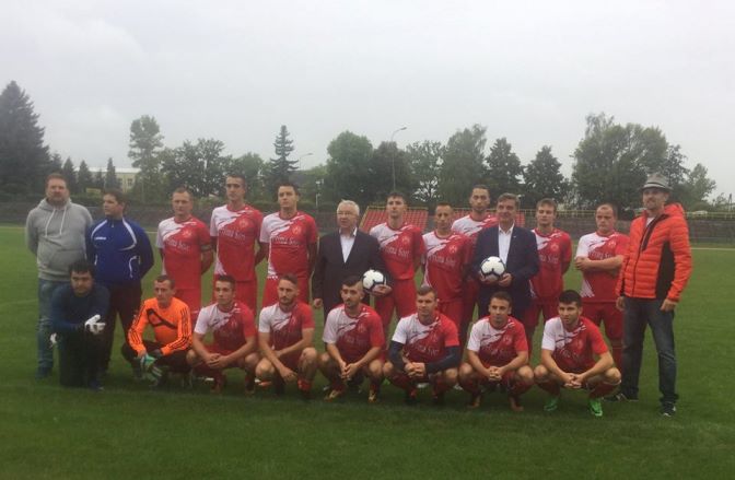 Starachowice. Mimo chłodnej pogody atmosfera na meczu FKS Łazy i Cukrownika Włostów gorąca. Razem z Andrzejem Prusiem symbolicznym kopnięciem piłki zainaugurowaliśmy nowy piłkarski sezon B klasy. W darze rywalizującym drużynom przekazaliśmy piłki. /fb/