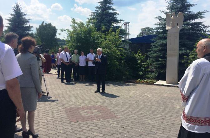 Węgrzyn. Ks. Bp Henryk Tomasik dokonal odsłonięcia i poświęcenia Pomnika 100 Rocznicy Odzyskania przez Polskę Niepodległości ufundowanego przez Parafian ks. Wojciecha Dobczyńskiego. /fb/BOŻE CIAŁO |