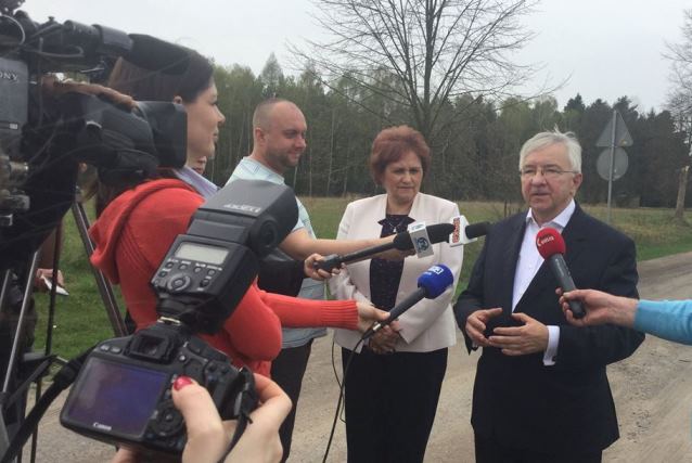 Trębowiec. Konferencja prasowa z udziałem starosty starachowickiego Danuty Krępy. Powiat Starachowicki otrzymał ponad 300 tys. zł dofinansowania z rządowego Programu Rozwoju Gminnej i Powiatowej Infrastruktury Drogowej na przebudowę drogi powiatowych: Osiny – Mokre Niwy – Krupów – Trębowiec Duży – gr. woj. Świętokrzyskiego. /fb/LOKALNE DROGI NASZYM PRIORYTETEM |