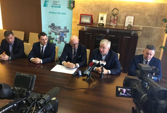 Starachowice. Specjalna Strefa Ekonomiczna "Starachowice" sponsorem SKS STAR. W świetle kamer i w obecności dziennikarzy podpisano umowę sponsorską. Plan jest bardzo ambitny III liga na 95-lecie Klubu, a na 100-lecie ekstraklasa. To wszystko jest możliwe. Kibicujemy piłkarzom. Niech STAR będzie chlubą naszego miasta. Podziękowanie wraz z gratulacjami dla prezesa SSE Marcina Perza i prezesa SKS Emila Krzemińskiego. Trzymamy kciuki. /fb/KIEDYŚ BYŁO TU ŚCIERNISKO |