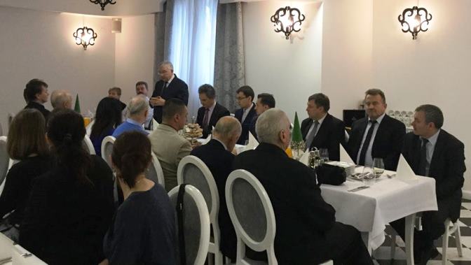 Starachowice. Noworoczny toast. Konferencja prasowa z udziałem senatora Jarosława Rusieckiego, posłów: Mari Zuby, Marka Kwitka, starosty Danuty Krępy, radnych: Marty Zięby, Tomasza Andrzejewskiego, Mariusza Zaborskiego i Zygmunta Andrejasa. Wznosząc noworoczny toast, wspomnieliśmy dobry 2017 rok, życząc mieszkańcom świętokrzyskiego jeszcze lepszego Nowego 2018, który będzie rokiem odpowiedzialnego rozwoju. /fb/