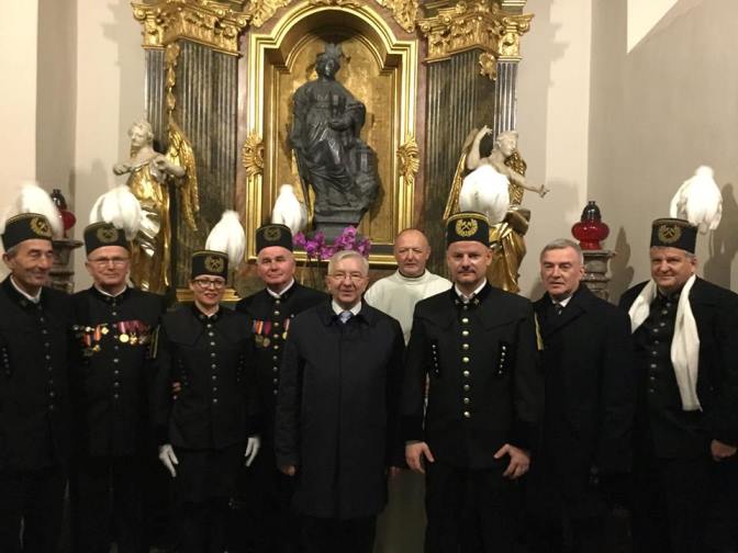 Kielce. Barbórka w Kieleckich Marmurach. Świętokrzyskie Kopalnie Surowców Mineralnych obchody Dnia Górnika rozpoczęli uroczystą Mszą Świętą w klasztorze na Karczówce, gdzie ich patronka Św. Barbara w osobliwej figurze czczona jest od XVII wieku. W grudniu 1646 r., przed dniem św. Barbary, górnik Hilary Mala z Machowskiej Góry, sąsiadującej z Karczówką, wydobył 3 wielkie samorodki ołowiu. Z największej bryły starosta kielecki Antoni Czechowski kazał wyrzeźbić posąg św. Barbary, mierzący 156 cm, który ustawiono w jednym z ołtarzy kościoła na Karczówce. Miejsce wydobycia zostało nazwane Szparą Świętych. Uroczysta akademia, podczas której odznaczenia państwowe otrzymali zasłużeni górnicy odbyła się w Hotelu Bienkowski. Miałem przyjemność asystować wojewodzie Andrzejowi Bętkowskiego podczas aktu odznaczania górników. Licznie zgromadzonej załodze Świętokrzyskich Kopalni Surowców Mineralnych złożyłem "barbórkowe" życzenia. Po akademii tradycyjnie Karczma Piwna. /fb/ROZMOWA DNIA W RADIO KIELCE |