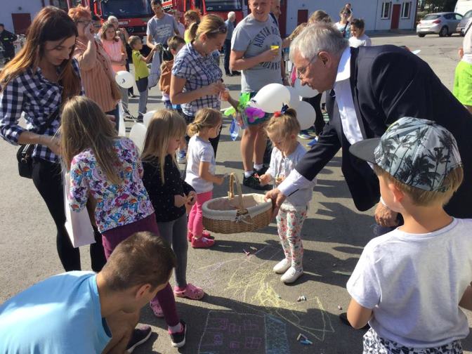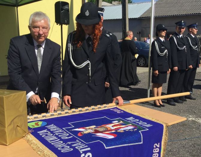 Wołów. Na Jubileusz 55-lecia Ochotniczej Straży Pożarnej lokalna społeczność ufundowała sztandar miejscowej jednostce ochotniczej straży. Na zaproszenie wójta Bliżyna Mariusza Walachni razem z wiceprzewodniczącym Sejmiku Andrzej Pruś wzięliśmy udział w tej uroczystości. W drzewce Sztandaru wbiłem symbolicznego gwoździa. Strażakom złożyłem serdeczne życzenia wraz z gratulacjami i słowami uznania za honorową służbę ludziom potrzebującym pomocy. Młodzieżową drużynę strażacką zaprosiłem do Sejmu RP. /fb/