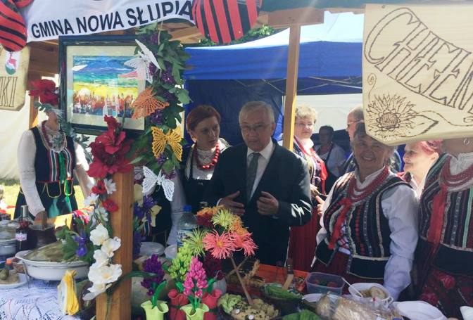 Święty Krzyż. Po raz dwunasty odbył się Jarmark Świętokrzyski, który rozpoczął się uroczystą Mszą Świętą Wniebowstąpienia Pańskiego, którą na świętokrzyskich błoniach odprawił superior Oblackiej Wspólnoty ojciec Zygfryd Wiecha. Do zgromadzonych na błoniach uczestników Jarmarku skierowałem przesłanie na znaczeniu chrześcijańskiego dziedzictwa pielęgnowanego w świętokrzyskim klasztorze. W festynie wzięło udział kilka tysięcy osób. Na Jarmarku swoją twórczość prezentowały zespoły i kapele ludowe z terenu powiatu kieleckiego. Miałem wielką przyjemność doznać ogromnej gościnności ze strony przedstawicieli gmin powiatu kieleckiego. /fb/