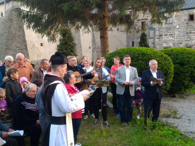Marcinków Górny. Z mieszkańcami i Honorowym Sołtysem Wąchocka Marekiem Samsonowskim i wiceprzewodniczącym Sejmiku Andrzejem Prusiem modliliśmy się na majówce. Modlitwę prowadził o. Benedykt Zieliński OCist. /fb/