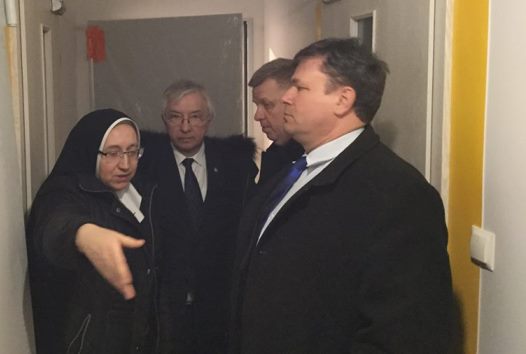 Denków. Wizyta w Domu Dziecka prowadzonym przez Zgromadzenie Sióstr Franciszkanek Rodziny Maryi. Dzięki dotacji w wysokości 150 tys. zł z Funduszu Kościelnego w Domu trwają prace remontowe, tak aby stworzyć mieszkającym tu dzieciom jeszcze bardziej rodzinne warunki. /fb/