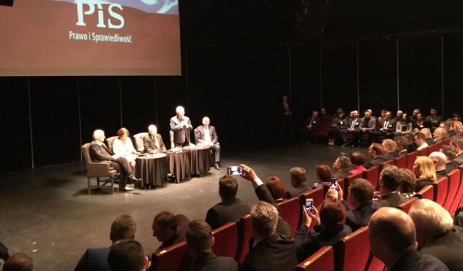 Kielce. W Kieleckim Centrum Kultury prezes Prawa i Sprawiedliwości Jarosław Kaczyński spotkał się z aktywem świętokrzyskiego PiS. W spotkaniu tym wzięło udział ponad 200 działaczy partii. Prezesowi PiS towarzyszyli wicemarszałkowie Sejmu: Joachim Brudziński - wiceprezes PiS i Ryszard Terlecki - przewodniczący Klubu Parlamentarnego PiS oraz poseł Beata Mazurek - rzecznik prasowy Prawa i Sprawiedliwości. /fb/SPOTKANIE Z RADNYMI |