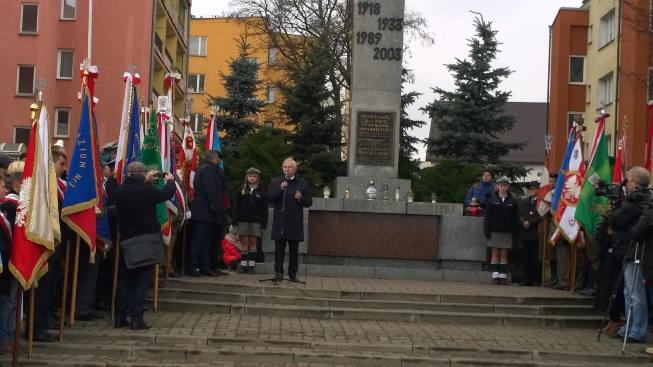 Starachowice. Obchody Narodowego Święta Niepodległości.Poseł Prawa i Sprawiedliwości Krzysztof Lipiec przemawiając do zgromadzonych zacytował słowa marszałka Józefa Piłsudskiego: "Naród, który nie pamięta o przeszłości, nie jest wart teraźniejszości i nie zasługuje na przyszłość”. - Jakże te słowa są dziś aktualne - mówił poseł. - Stajemy tu przed Pomnikiem Niepodległości, by zaświadczyć, że zasługujemy na przyszłość. W roku 1050-lecia chrztu Polski i powstania polskiej państwowości warto podkreślić, że 11 listopada jest dniem najważniejszym, bo wtedy w 1918 roku, po raz pierwszy w historii, Polska po latach niewoli wybiła się na niepodległość - powiedział Krzysztof Lipiec. /źródło: Radio Kielce/