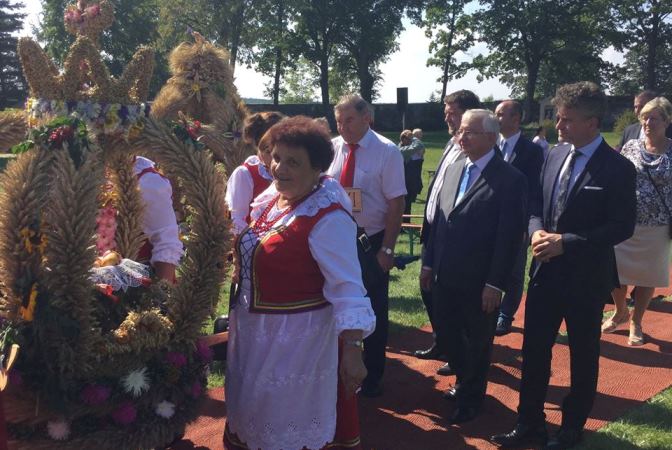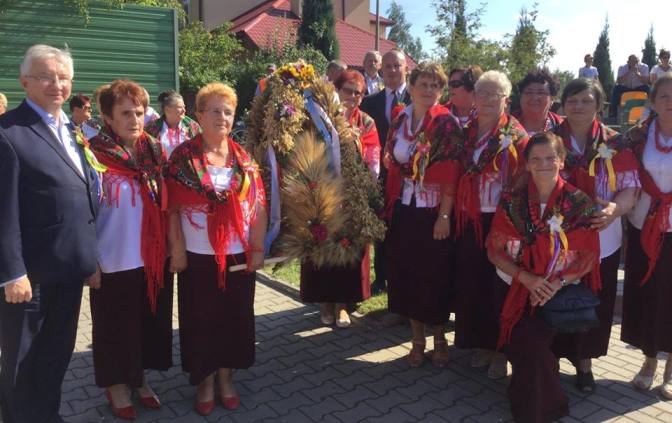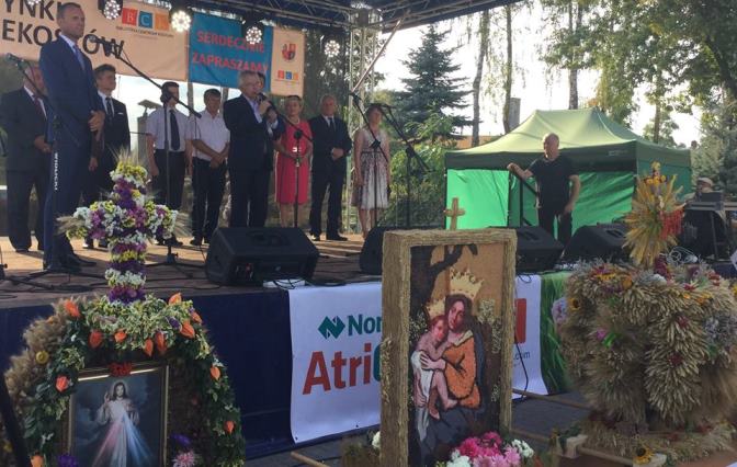 Jędrzejów. Podczas Gminnego Święta Plonów zostałem obdarowany wieńcem dożynkowym przez Koło Gospodyń z Potoka Wielkiego. Burmistrzowi Marcinowi Piszczkowi dziękuję za serdeczne przyjęcie. /fb/PIEKOSZOWSKIE DOŻYNKI |