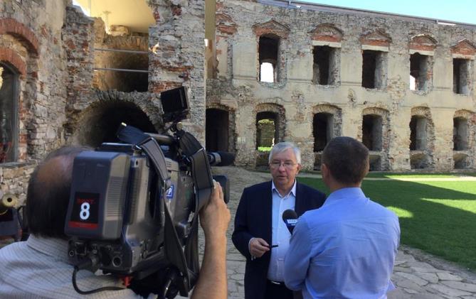 Ujazd. Konferencja prasowa w sprawie II etapu rewaloryzacji zabytkowego zespołu pałacowego Krzyżtopór, polegającego na przywróceniu pełnego założenia ogrodowego przy pałacu. /fb/GŁOS DNIA W TVP3 KIELCE |