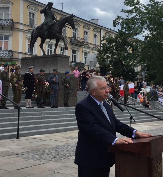 Kielce. Na Placu Wolności u stóp Pomnika Konnego Marszałka Piłsudskiego odbyła się uroczysta odprawa wojskowa Garnizonu Kieleckiego z okazji Święta Wojska Polskiego. Zwracając się do żołnierzy Wojska Polskiego m.in. powiedziałem: - Warto w rocznicę „Cudu nad Wisłą” podjąć się refleksji nad dziejami polskiego oręża. To właśnie „Bitwa Warszawska” była uhonorowaniem wszystkich wcześniejszych wiekopomnych wydarzeń z naszej trudnej i bolesnej historii. Zarówno Władysław Jagiełło, jak i Jan II Sobieski po swoich zwycięstwach pokłonili się świętokrzyskiej ziemi. To właśnie z kieleckiego garnizonu została sformułowana obrona Westerplatte. Dziś żyjemy w wolnym kraju, tak nam mówią, ale trudno sobie wyobrazić funkcjonowanie państwa polskiego bez sprawnego i dzielnego wojska. Jestem przekonany, że rządowi Beaty Szydło bardzo zależy, by Polacy czuli się bezpiecznie we własnym kraju. Pragnę wyrazić przekonanie, że polskie wojsko przez rząd zostanie dostrzeżone, a jego wysiłek nagrodzony. /fb/W OBIEKTYWIE RADIA KIELCE |