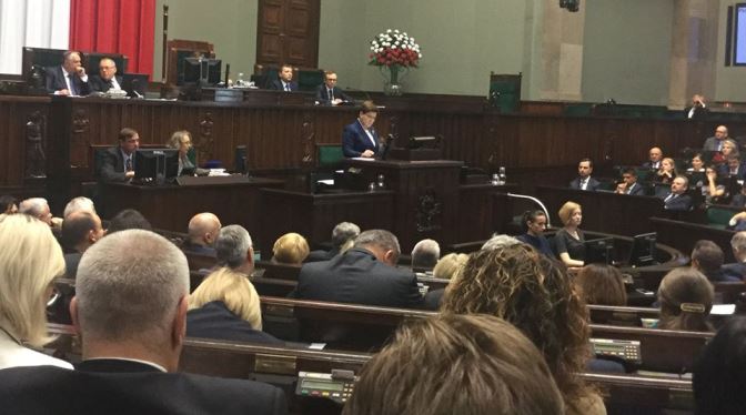 Podczas 19. posiedzenia Sejmu RP, w trzecim dniu obrad, pani premier Beata Szydło przedstawiła Izbie informację w sprawie komunikatu Komisji Europejskiej dotyczącego sytuacji w Polsce. Z inicjatywy Klubu Parlamentarnego PiS, Sejm podjął uchwałę w sprawie obrony suwerenności Rzeczypospolitej Polskiej i praw jej obywateli. /fb/STARACHOWICKA MŁODZIEŻ W SEJMIE RP |
