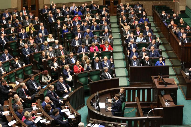 Warszawa. Zakończyło się trzydniowe posiedzeniu Sejmu RP. Pomimo wrzasku opozycji Sejm skierował do dalszych prac ważną nowelizację ustawy o Trybunale Konstytucyjny oraz nowelizację ustawy o służbie cywilnej. /fot. K. Białoskórski/ 5. POSIEDZENIE SEJMU RP |