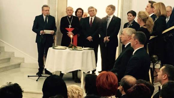 Warszawa. Spotkanie opłatkowe w polskim Sejmie z udziałem ks. kar. Kazimierza Nycza Metropolity Warszawskiego i premier Beaty Szydło. /fb/OPŁATEK OSTROWIECKIEGO PiS |