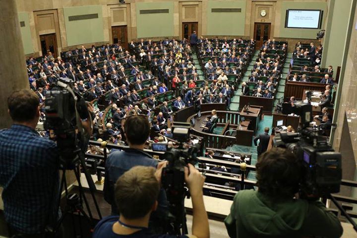 Warszawa. Zakończyło się dwudniowe posiedzenie Sejmu RP /25 - 26 listopada/. Z inicjatywy posłów Prawa i Sprawiedliwości Sejm uchwalił ustawę o obłożeniu 70% podatkiem PIT dochodów uzyskanych z tytułu odpraw w spółkach Skarbu Państwa. Również z inicjatywy PiS, Sejm podjął uchwały o utracie mocy prawnej 5 uchwał sejmowych mocą, których Sejm poprzedniej kadencji głosami PO, PSL, SLD i innych lewaków wskazał osoby do Trybunału Konstytucyjnego. W ten sposób Sejm obecnej kadencji głosami posłów PiS i Kukiz'15 przywraca w państwie porządek konstytucyjny. Sejm rozpoczął też prace nad obywatelskim projektem nowelizacji ustawy o dochodach jednostek samorządu terytorialnego. Celem ustawy jest częściowe wyrównanie dochodów samorządów zmniejszonych na skutek zmian w prawie, które nakładały na samorządy obowiązki i zadania bez zapewnienia finansowania ich realizacji. /fot. Rafał Zambrzycki/ - fbBEZ DEMAGOGII W TVP KIELCE |