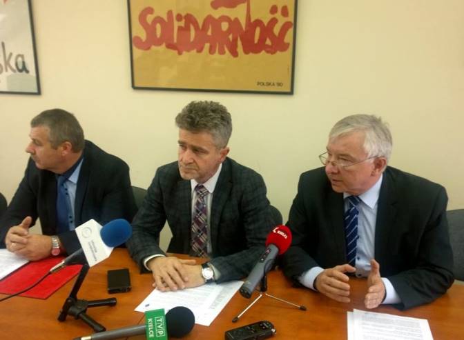 Kielce. W siedzibie Solidarności Świętokrzyskiej trwa konferencja prasowa - "W obronie Kieleckich Kopalni Surowców Mineralnych". W konferencji uczestniczy poseł Krzysztof Lipiec wraz że świętokrzyskimi parlamentarzystami Prawa i Sprawiedliwości. /fb - Andrzej Pruś/POROZUMIENIE NAD KAMIENNĄ |