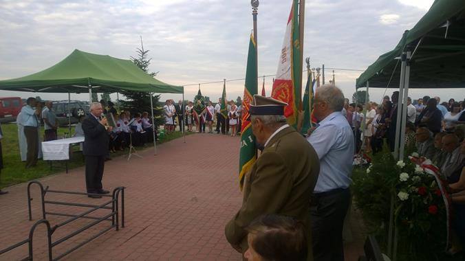 Słupia Pacanowska. W 71. rocznicę zwycięskiej bitwy Batalionów Chłopskich z Niemcami, pod pomnikiem upamiętniającym to wydarzenie odbyła się religijno - patriotyczna manifestacja mieszkańców gminy Pacanów. Mszę Świętą w intencji poległych partyzantów BCh odprawił kustosz pacanowskiej bazyliki ks. prał. Leszek Domagała. Apel Poległych przeprowadził wójt Pacanowa Wiesław Skop. Delegacja Prawa i Sprawiedliwości złożyła kwiaty przed pomnikiem. Zwracając się do uczestników uroczystości wyraziłem wdzięczność obecnym kombatantom Batalionów Chłopskich za partyzancki trud w obronie wolności. W uroczystości tej uczestniczył razem ze mną wiceprzewodniczący Sejmiku Andrzej Pruś. /fb/