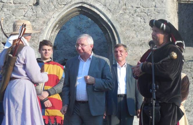 Szydłów. Na zaproszenie wójta Jana Klamczyńskiego i kasztelan Bractwa Rycerskiego Zamku Szydłów Pawła Krakowiaka, razem z wiceprzewodniczącym Sejmiku Świętokrzyskiego Andrzejem Prusiem wziąłem udział w 17 Międzynarodowym Turnieju Rycerskim o Miecz Króla Kazimierza Wielkiego. /fb/