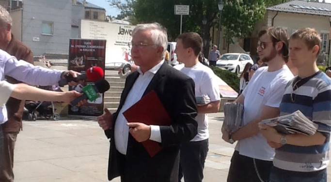 Kielce. Na Placu Artystów spotkałem się z dziennikarzami, gdzie zobligowany przez wielu mieszkańców województwa świętokrzyskiego, wyraziłem sprzeciw wobec manipulacji opinii publicznej i brudnej kampanii wyborczej prowadzonej przez Telewizję Publiczną przeciwko Andrzejowi Dudzie. W tej sprawie wydałem oświadczenie, które przedstawiłem dziennikarzom. /fb/PONIDZIE Z PiSem IDZIE |