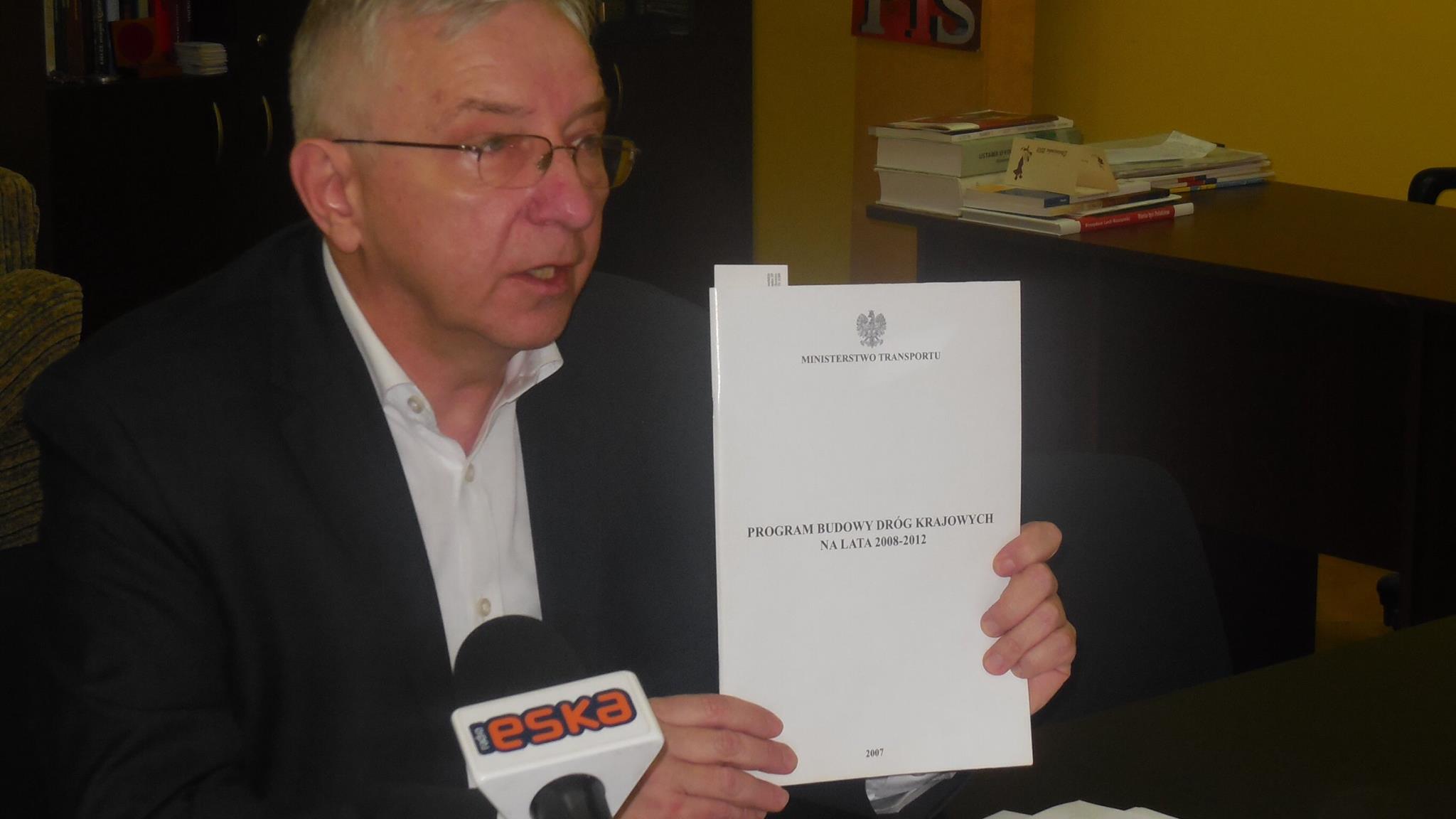 Starachowice. Spotkałem się z dziennikarzami na konferencji prasowej. Zaniedbania rządu PO - PSL związane z modernizacją drogi krajowej nr 42, bezwrtościowe akcje pracowników dawnej Fabryki Samochodów Ciężarowych oraz Pakiet Socjalny "Bliżej Ludzi" to główne tematy konferencji. Przypomniałem, że modernizacja drogi 42 /obwodnica Wąchocka i przejście przez Starachowice/ była zapisana w Programie Budowy Dróg Krajowych na lata 2008-2012 przygotowanym przez rząd Jarosława Kaczyńskiego. Inwestycja ta winna być zakończona w 2010 roku. Obecnie konsultowany jest kolejny program, w którym nie ma już tej inwestycji. Stąd też moja interpelacja do premiera rządu. /fb/85. POSIEDZENIE SEJMU RP |
